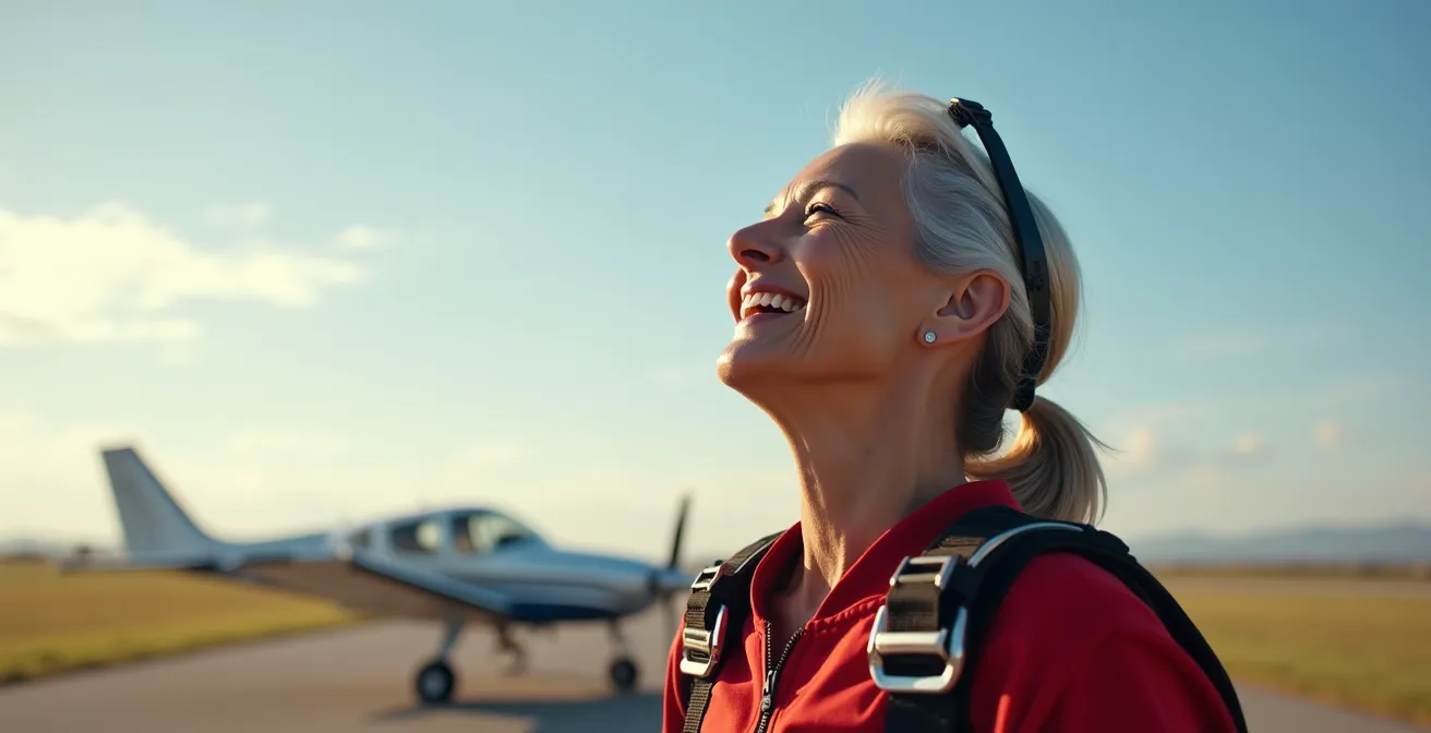 Avant même de penser au type de paysage ou à la couleur de la combinaison, la première étape, non négociable, est le bilan de santé. Pour une personne de 50 ans et plus, la sécurité n’est pas une option, c’est une ingénierie précise. Le corps sera soumis à des contraintes inhabituelles : une accélération rapide, une variation de pression et un impact maîtrisé à l’atterrissage. Il doit être prêt. La bonne nouvelle, c’est que la plupart des seniors en bonne forme physique sont tout à fait aptes.